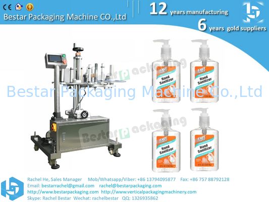 Máquina para pegar etiquetas redondas de botellas de gel para lavarse las manos